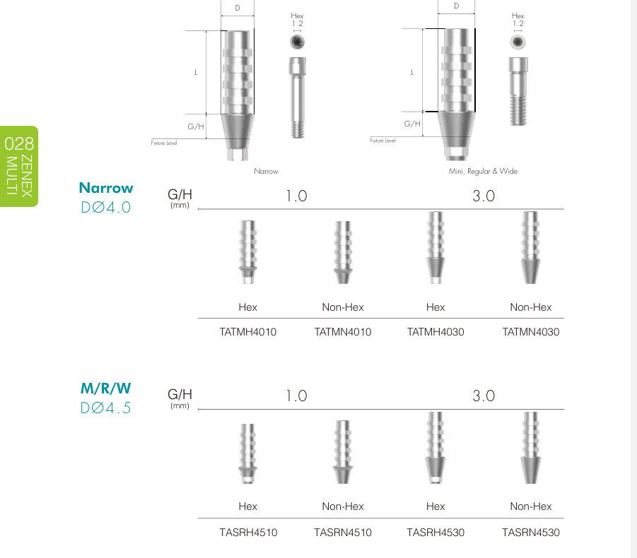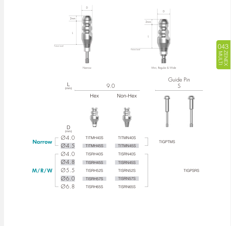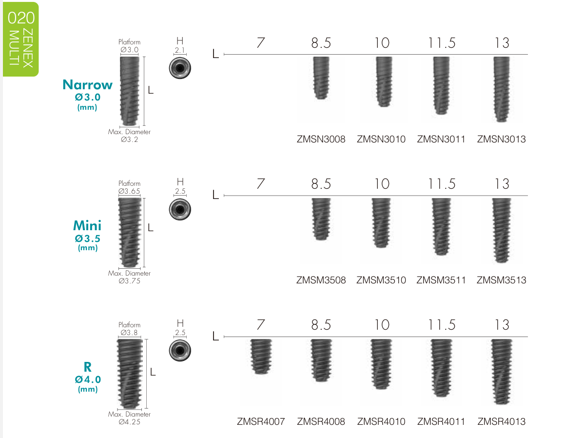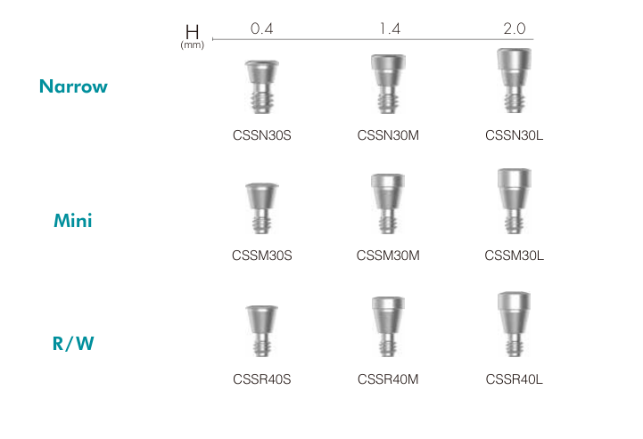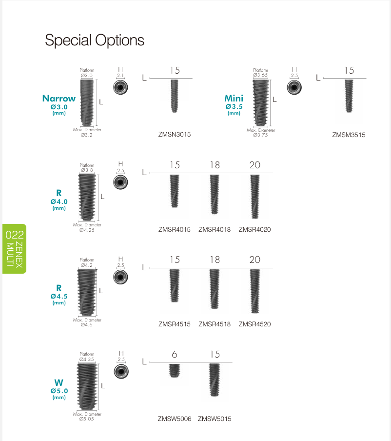 Narrow Fixture (Ø 3.0–3.5 mm) Dùng trong vùng răng cửa, xương hẹp hoặc khoảng mất răng nhỏ