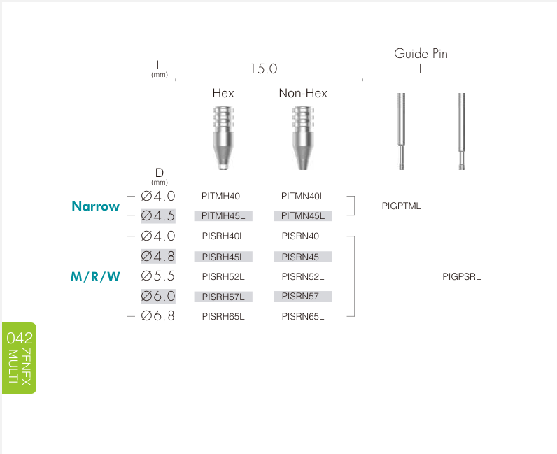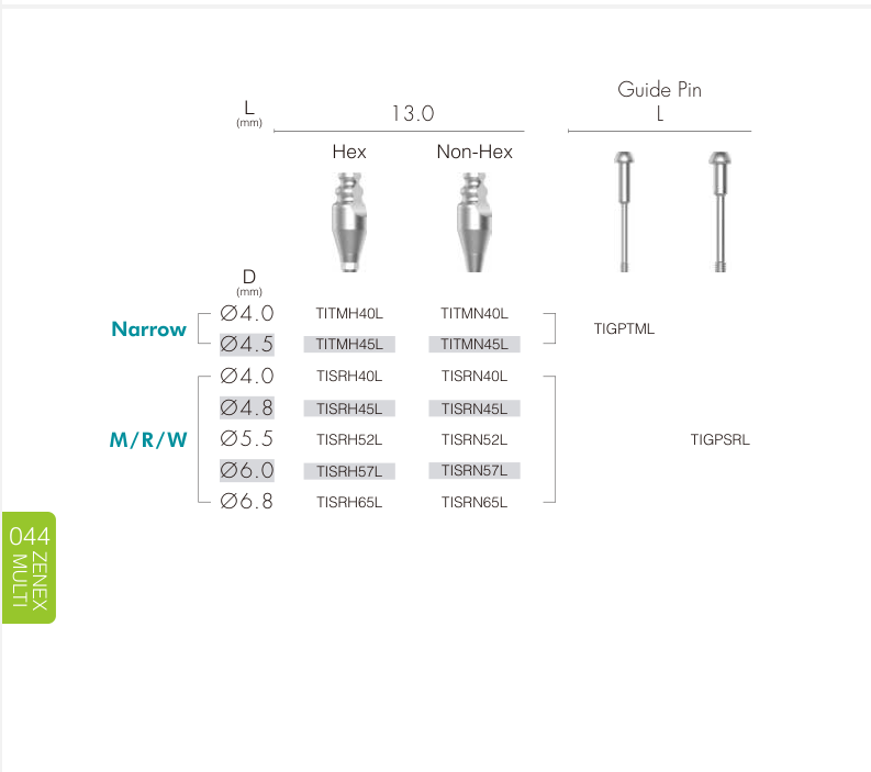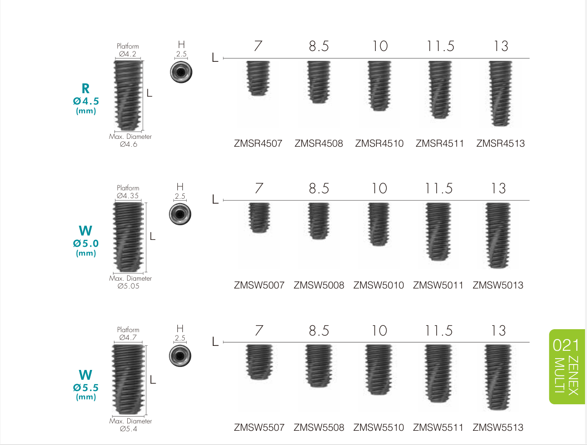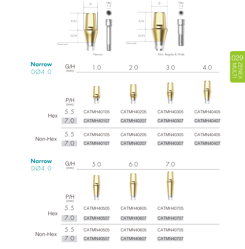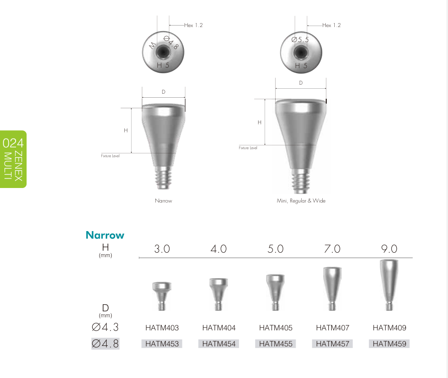 Narrow Fixture (Ø 3.0–3.5 mm) Dùng trong vùng răng cửa, xương hẹp hoặc khoảng mất răng nhỏ