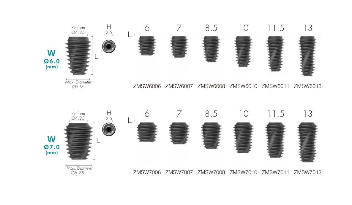 • Implant dài 6mm phù hợp sử dụng cho vùng xương hàm dưới thấp.
