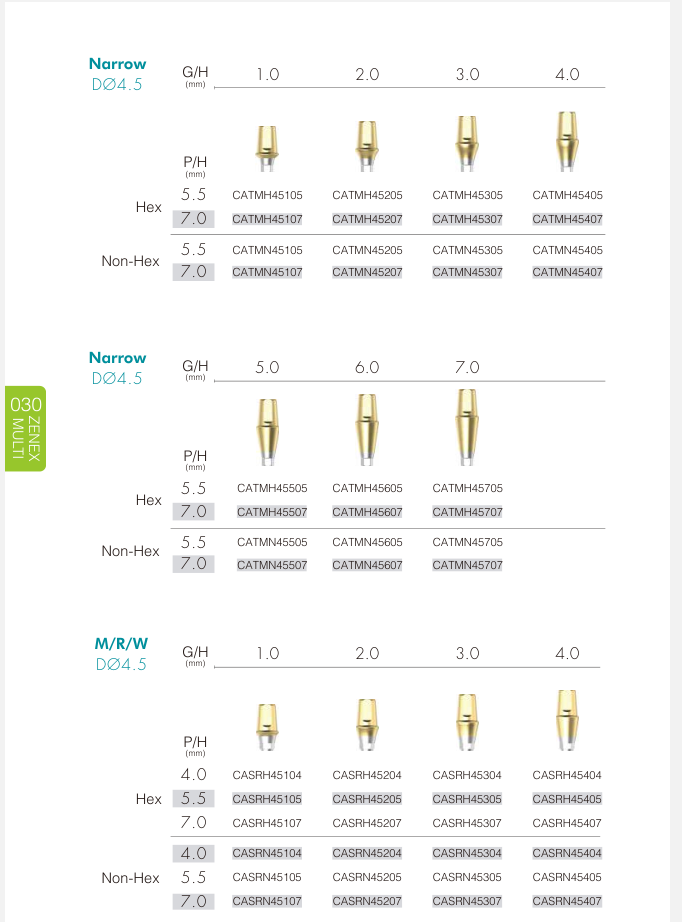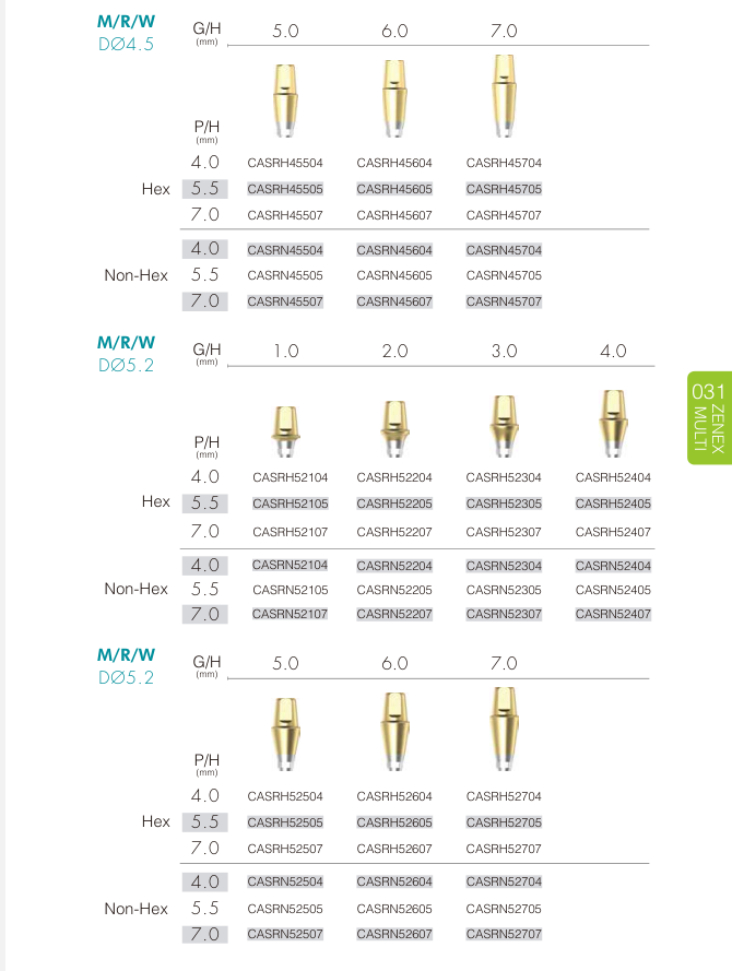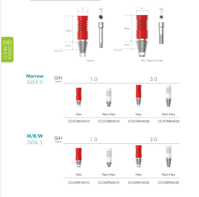 • CCM Cast Abutment (40p): Abutment bằng kim loại dùng cho phục hình đúc.