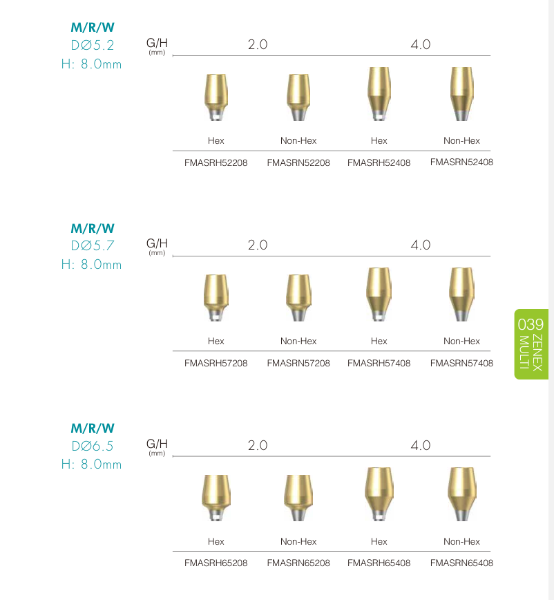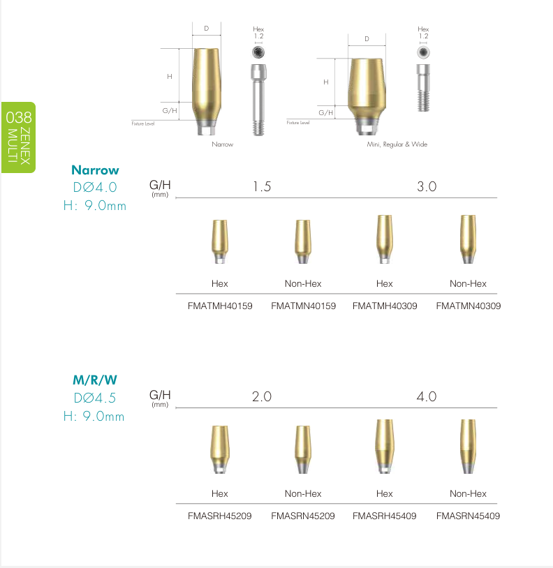 • FreeMilling Abutment (38p): Abutment dạng trống dùng để CAD/CAM hoặc đắp sáp.
